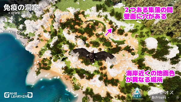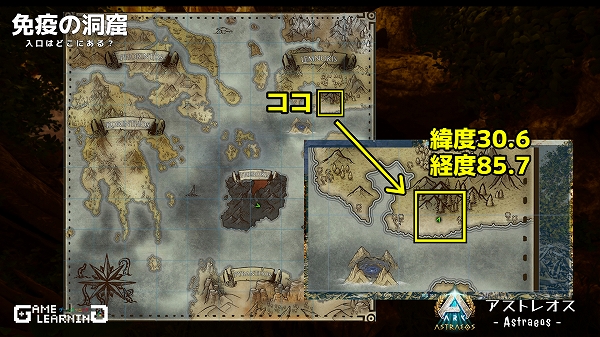 洞窟の場所はアストレオスマップの「レムノキス」エリア、大陸の下側。