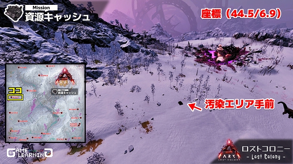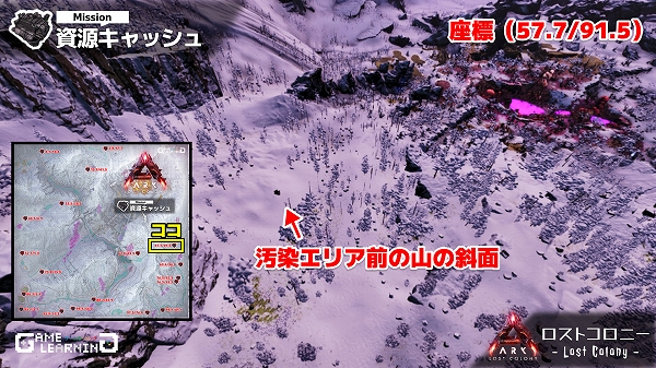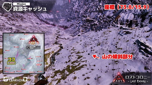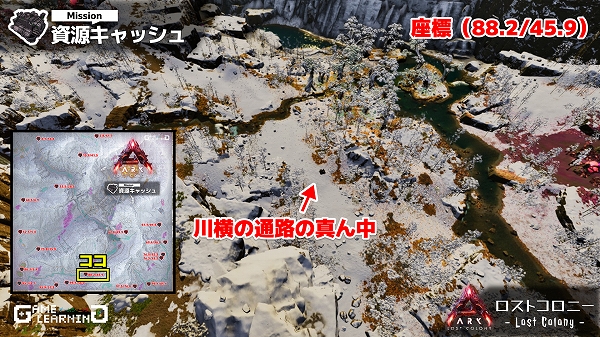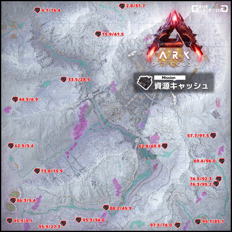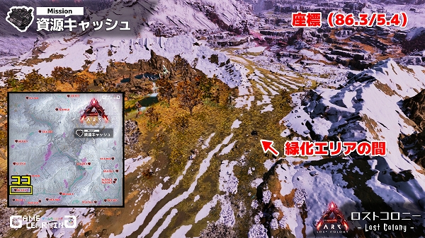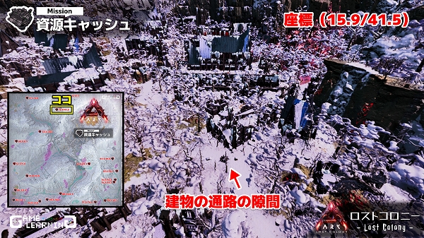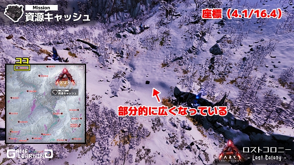 エリア内に設置される資源キャッシュの場所は19ヵ所でした。ローカルで確認できたそれぞれのポイントを見ていきます。