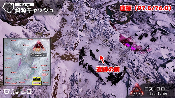 13カ所目は座標97.5/76.0。遺跡の手前に設置されています。