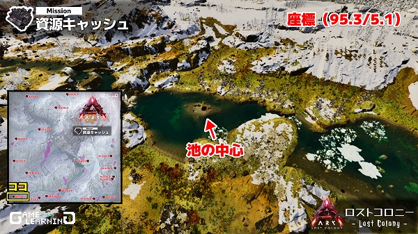 9カ所目は座標95.3/5.1。池の中心にある陸地部分に設置されています。
