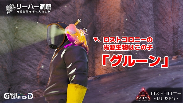ロストコロニーでの光源生物はマップ固有の新生物となる「グルーン」