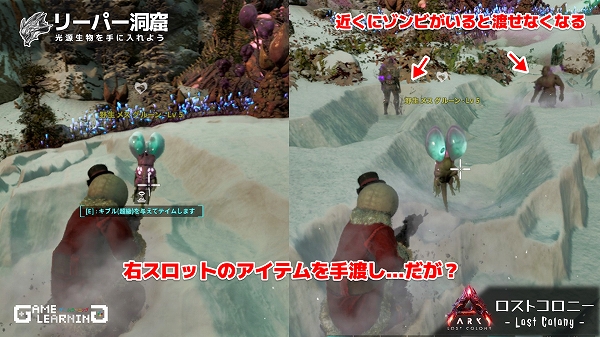 やり方としては簡単そうですが、近くにゾンビがいるとアイテムを渡すことができません。