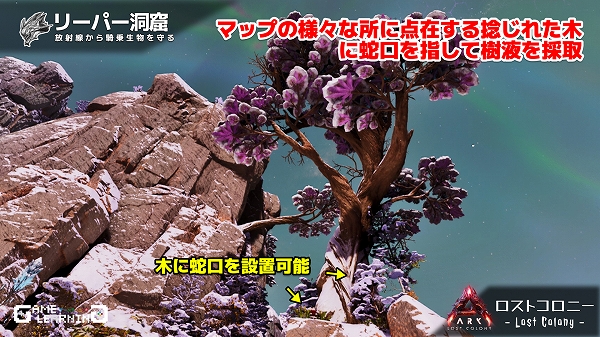 デスモ&クレート洞窟(南東)の中にも樹液が採取できる木があります。