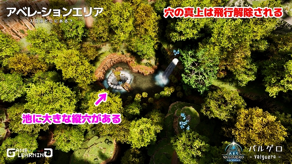 穴の真上では飛行生物に乗っていると騎乗解除されるのでこちらも同様に注意が必要です。