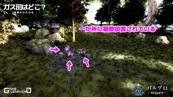 ガス田は1か所にいくつかまとまって生成されています。地形上見づらい場所に多く、場所がわかっていないと気付かないようなところにも設置されていました。