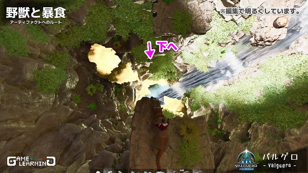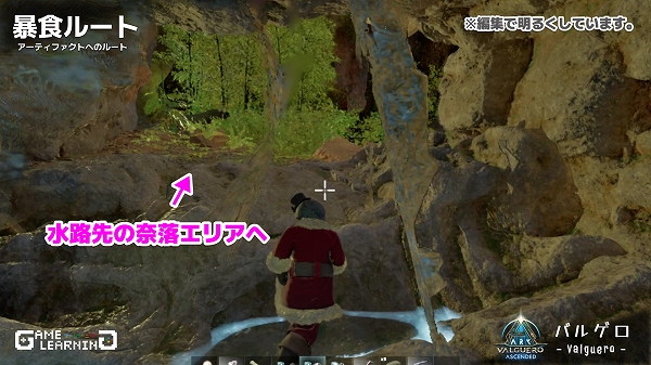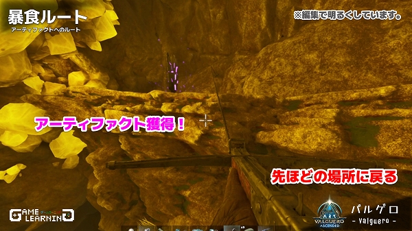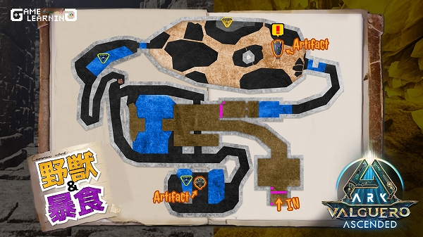 洞窟内は2層構造になっており、アーティファクトは2つ。縦穴を中心に左右にルートが分かれております。