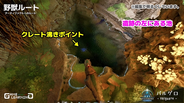 遺跡の左側にはため池があり、中にクレート沸きポイント。