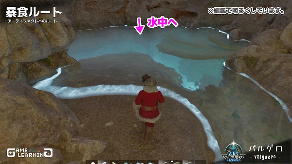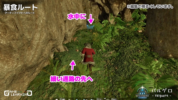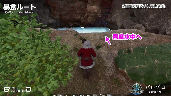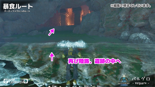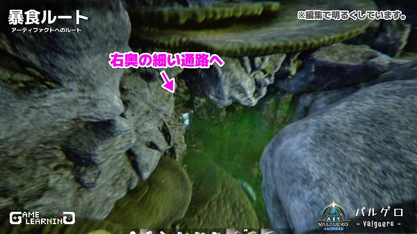 水中の通路は細くわかりづらいです。右奥に通路があるので進みます。