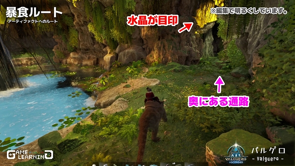 天井に水晶があるのを目印に奥にある通路を進みます。