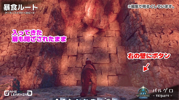 帰りも入ってきた扉は閉ざされてますが、右側の壁にボタンで開けることができました。